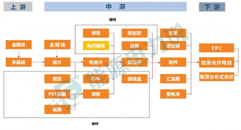 光伏產(chǎn)業(yè)以硅為主線,上中下游包括硅料、硅片、 電池、組件、電站等23個(gè)環(huán)節(jié)。
