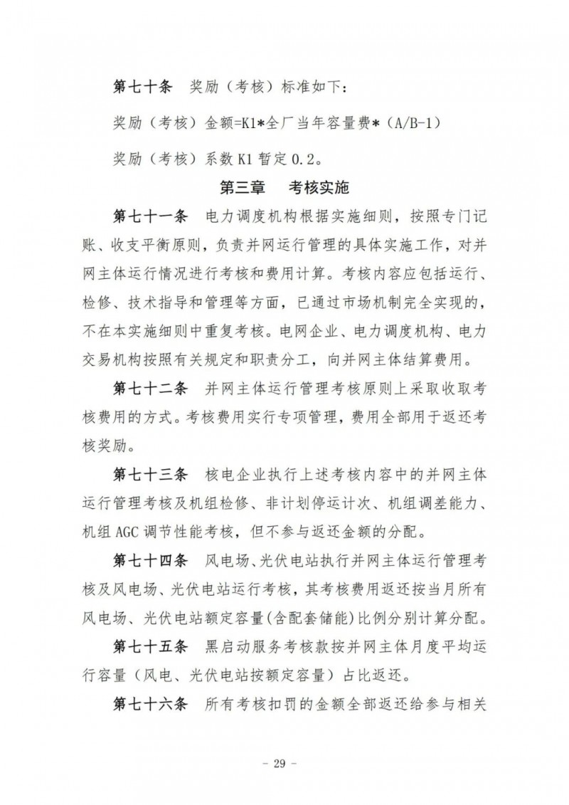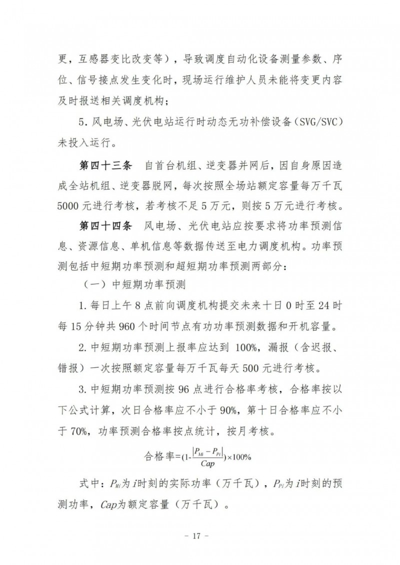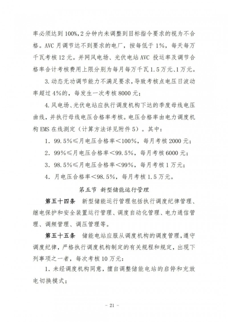 風(fēng)電場、光伏電站執(zhí)行并網(wǎng)主體運(yùn)行管理考核及風(fēng)電場、光伏電站運(yùn)行考核,其考核費(fèi)用返還按當(dāng)月所有風(fēng)電場、光伏電站額定容量(含配套儲(chǔ)能)比例分別計(jì)算分配。