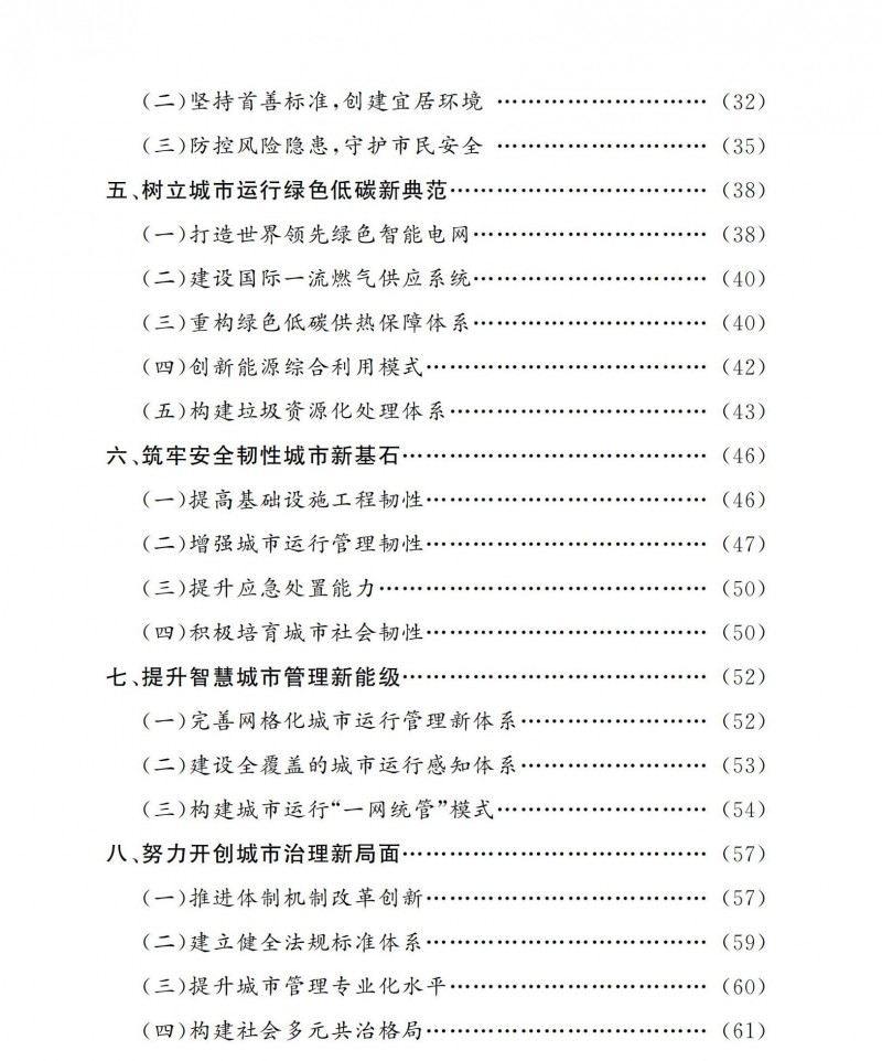 城市運(yùn)行保障體系更加安全、高效、清潔、低碳,服務(wù)保障能力顯著提升。補(bǔ)齊市政基礎(chǔ)設(shè)施能力短板,并形成一定裕度。外受電通道輸電能力達(dá)到4300萬千瓦,本地發(fā)電裝機(jī)容量達(dá)到1533萬千瓦(含應(yīng)急備用電源),城鎮(zhèn)地區(qū)供熱面積達(dá)到10.5億平方米,生活垃圾焚燒和生化處理能力達(dá)到3.1萬噸/日以上(焚燒處理能力達(dá)到2.2萬噸/日以上、生化處理能力達(dá)到0.9萬噸/日以上),全市電動汽車充電樁累計建成量達(dá)到70萬個。生產(chǎn)生活方式綠色低碳轉(zhuǎn)型全面推進(jìn),電能消費占終端能源消費比重力爭達(dá)到29%,外調(diào)綠色電量力爭達(dá)到300億千瓦時,天然氣消費量控制在200億立方米/年左右,生活垃圾回收利用率達(dá)到37.5%以上,實現(xiàn)原生生活垃圾“零填埋”。