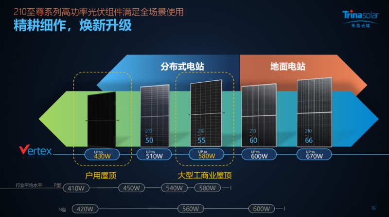 如果說430W組件主要用在戶用光伏,那么,580W組件可以說是海外工商業(yè)分布式項目的優(yōu)秀搭檔。張映斌表示,海外客戶對210大尺寸產(chǎn)品的接受度逐漸提升,部分客戶已經(jīng)按照182方案搭好支架,但希望改用210高效產(chǎn)品,增加系統(tǒng)裝機容量,他們便適時推出了這款新型組件:寬度與182組件一致(1134mm),長度方向仍采用210電池11片排布,功率最高達580W,比182尺寸的主流功率(545W)提升約6%。