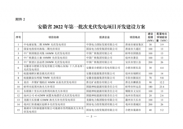 6月20日,安徽省能源局正式下發(fā)了《關(guān)于2022年第一批次風(fēng)電和光伏發(fā)電項(xiàng)目開發(fā)建設(shè)方案》的通知。根據(jù)該通知,安徽省2022年全省第一批次風(fēng)電和光伏發(fā)電項(xiàng)目并網(wǎng)規(guī)模競(jìng)爭(zhēng)性配置,確定建設(shè)21個(gè)光伏發(fā)電項(xiàng)目和13個(gè)風(fēng)電項(xiàng)目,總裝機(jī)規(guī)模300萬千瓦,其中光伏200萬千瓦、風(fēng)電100萬千瓦。