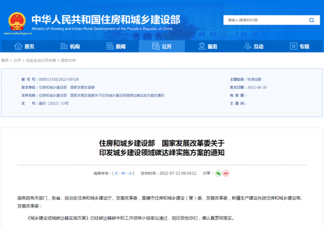 印發(fā)城鄉(xiāng)建設(shè)領(lǐng)域碳達(dá)峰實施方案的通知