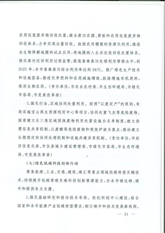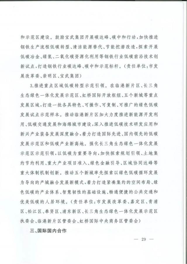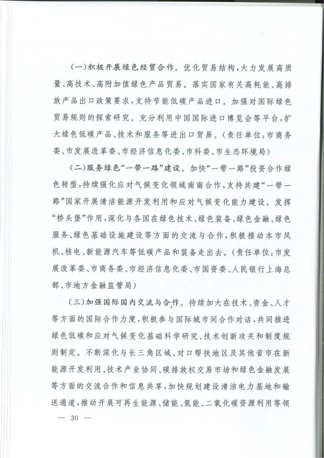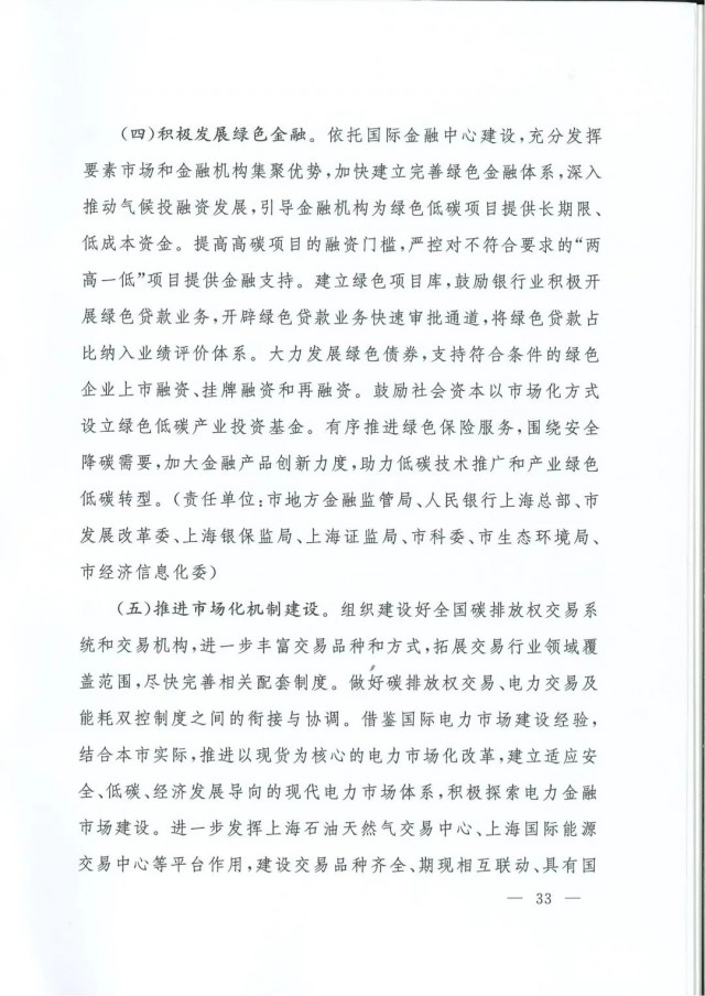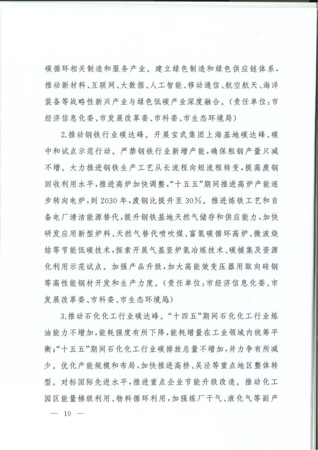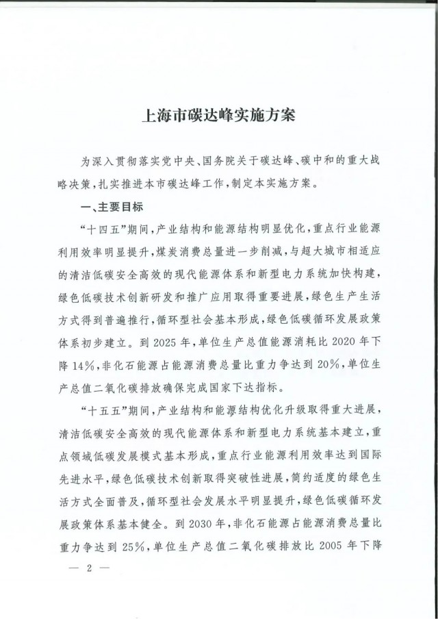 近日,上海市人民政府辦公廳印發(fā)了《上海市碳達峰實施方案》?!斗桨浮访鞔_主要目標:到2025年,單位生產(chǎn)總值二氧化碳排放確保完成國家下達指標。到2030年單位生產(chǎn)總值二氧化碳排放比2005年下降70%,確保2030年前實現(xiàn)碳達峰。并計劃組織實施“碳達峰十大行動”,包括能源綠色低碳轉(zhuǎn)型行動、節(jié)能降碳增效行動、工業(yè)/城鄉(xiāng)建設/交通領(lǐng)域綠色低碳行動、循環(huán)經(jīng)濟助力降碳行動、綠色低碳科技創(chuàng)新行動、碳匯能力鞏固提升行動、綠色低碳全民行動、綠色低碳區(qū)域行動。