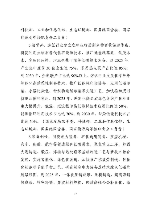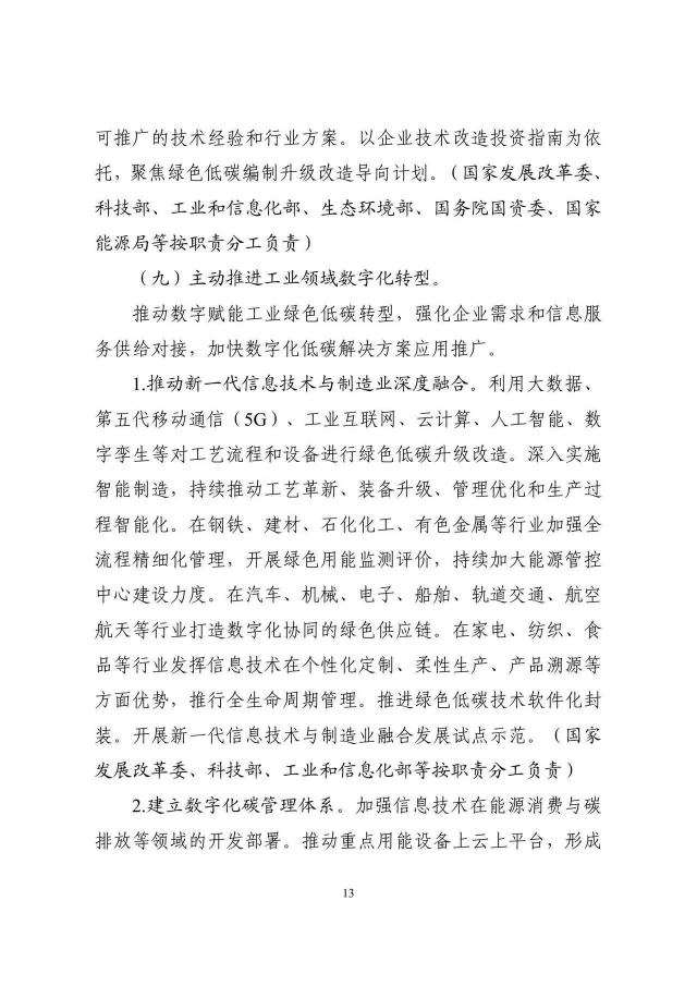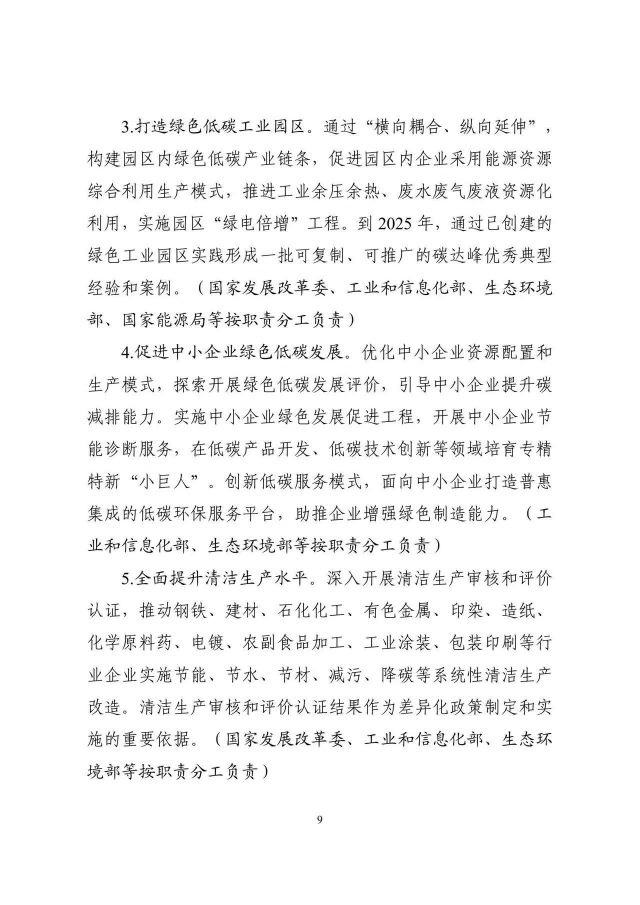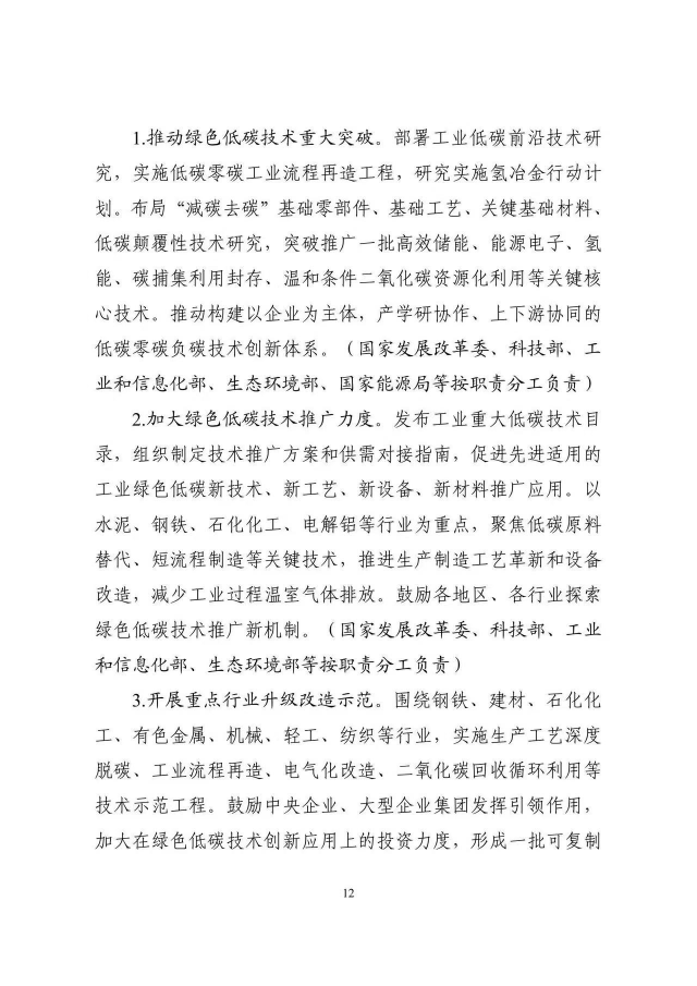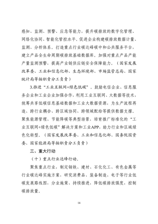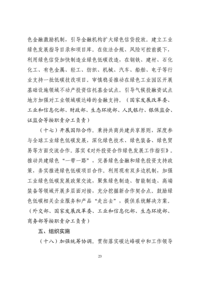《工業(yè)領(lǐng)域碳達(dá)峰實(shí)施方案》已經(jīng)碳達(dá)峰碳中和工作領(lǐng)導(dǎo)小組審議通過(guò),現(xiàn)印發(fā)給你們,請(qǐng)認(rèn)真貫徹落實(shí)。