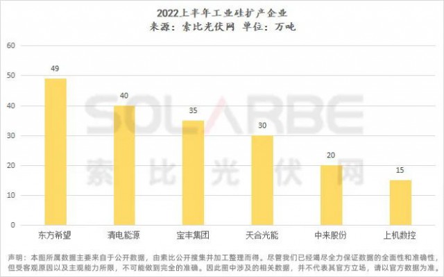 經(jīng)公開信息統(tǒng)計(jì),東方希望、清電能源、寶豐集團(tuán)、天合光能、中來(lái)股份、上機(jī)數(shù)控六家企業(yè)上半年共計(jì)擴(kuò)產(chǎn)189萬(wàn)噸工業(yè)硅,且工業(yè)硅擴(kuò)產(chǎn)規(guī)模均超出配套多晶硅產(chǎn)量。