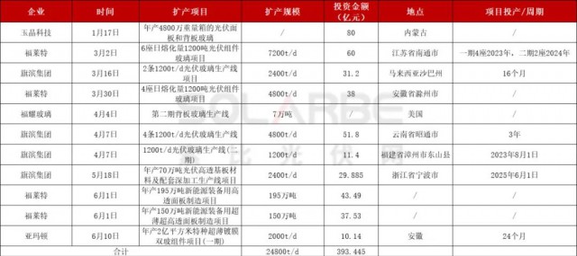 從上半年公布的光伏玻璃擴(kuò)產(chǎn)信息來(lái)看,玉晶科技、福萊特、旗濱集團(tuán)、福耀玻璃、亞瑪頓共計(jì)發(fā)布了超24800t/d(噸/日)玻璃擴(kuò)產(chǎn)信息。然而,更多光伏玻璃擴(kuò)產(chǎn)項(xiàng)目處于聽證階段。