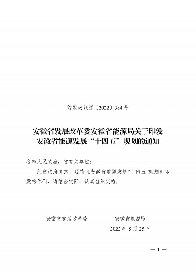 8月1日,安徽省發(fā)展改革委、安徽省能源局印發(fā)了《安徽省能源發(fā)展“十四五”規(guī)劃》。