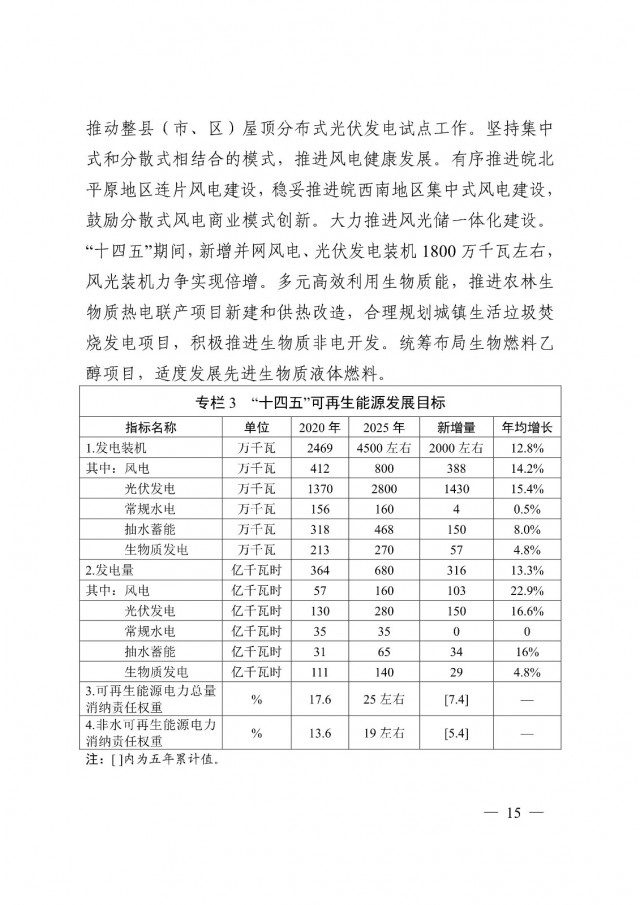 根據(jù)規(guī)劃,安徽省“十四五”期間,風(fēng)電、光伏裝機(jī)將都實(shí)現(xiàn)倍增。其中,