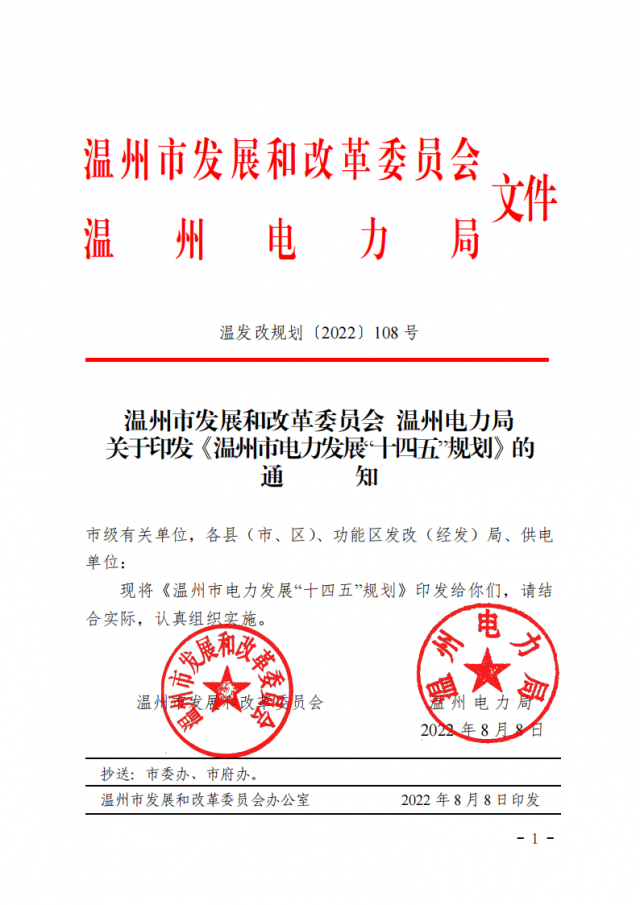 附件:溫發(fā)改規(guī)劃〔2022〕108號 溫州市發(fā)展和改革委員會 溫州電力局關(guān)于印發(fā)《溫州市電力發(fā)展“十四五”規(guī)劃》的通知.pdf