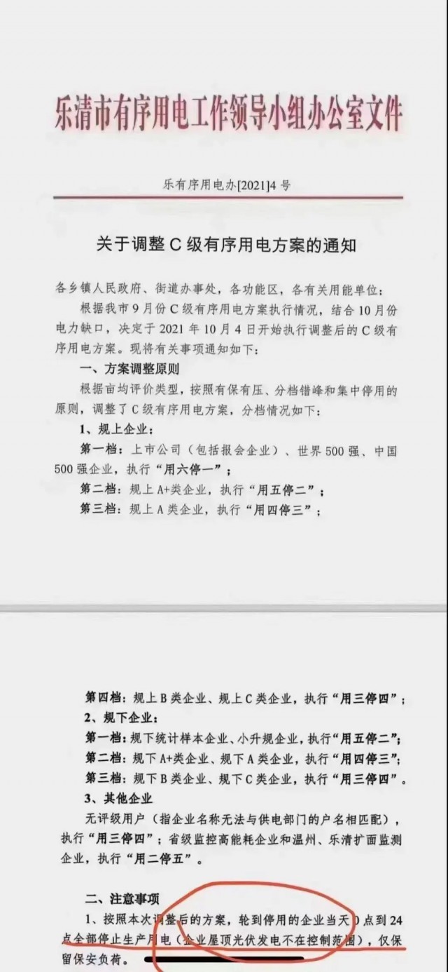 事實上,去年8、9月份就曾因煤電供應緊張下的電力缺口和“能耗雙控”政策導致多地出臺了限電措施,盡管本輪限電與去年的限電背景不同,但最終帶來的結果是一致的,即停產(chǎn)停工,而安裝了分布式光伏的工廠則具有一定“豁免權”。