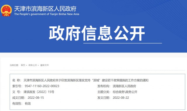 濱海新區(qū)落實(shí)支持“濱城”建設(shè)若干政策措施的工作方案的通知
