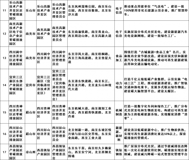 四川省近零碳排放園區(qū)試點(diǎn)擬確定名單(含試點(diǎn)園區(qū)名稱、所屬地區(qū)、所屬園區(qū)、申報(bào)主體、試點(diǎn)范圍、主導(dǎo)產(chǎn)業(yè)、試點(diǎn)特色),共17家園區(qū)。