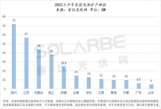 今年上半年,光伏電池擴產規(guī)模超292.5GW,投資總額超932億元。其中,170GW已經(jīng)明確落地時間:2022年預計投產30.3GW、2023年106.41GW、另有35GW預計在2024-2025年投產。