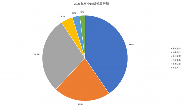 通過簽訂硅料長單、鎖定優(yōu)質(zhì)客戶,硅料三巨頭能夠有效規(guī)避市場瘋狂擴產(chǎn)、競爭加劇對自身出貨量的影響,同時也能夠有效消化自身的新增產(chǎn)能,在高速增長的市場中保持甚至提升自身的市場份額。