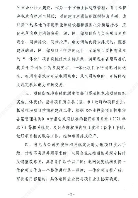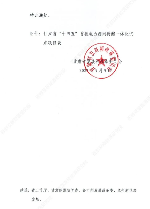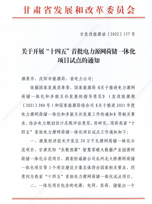 9月9日,甘肅省發(fā)改委印發(fā)《關(guān)于開展“十四五”首批電力源網(wǎng)荷儲(chǔ)一體化 項(xiàng)目試點(diǎn)的通知》。