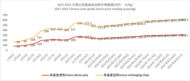 今年以來,硅料價格依然保持持續(xù)上漲態(tài)勢,已創(chuàng)下近十年新高。目前硅料成交均價超過了300元/千克,相比2021年初的80元/千克成交價,漲幅高達275%。