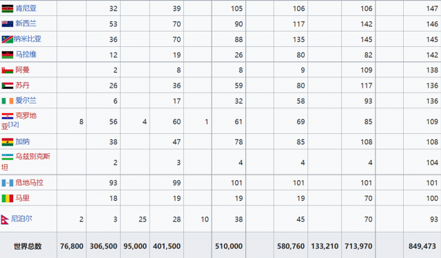 國際可再生能源署2021年度世界各國光伏裝機(jī)統(tǒng)計(jì)(單位:MW)