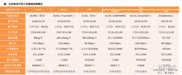 效率:IBC(疊加)>TOPCon(雙面)>HJT