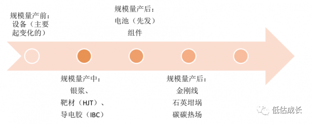 投資維度1:短期看業(yè)績釋放順序,設備>新輔材>電池組件>老輔材。