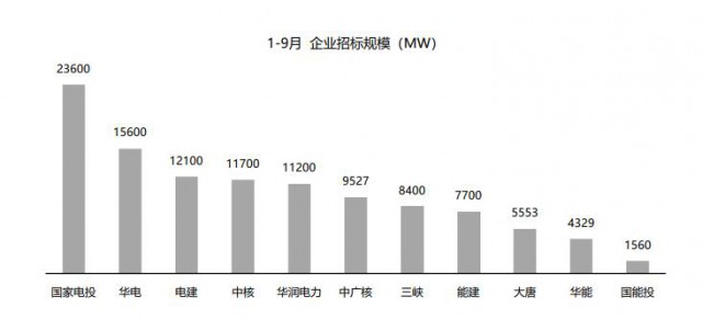 ?圖:據(jù)公開(kāi)數(shù)據(jù)統(tǒng)計(jì),2022年1-9月企業(yè)招標(biāo)規(guī)模(MW)