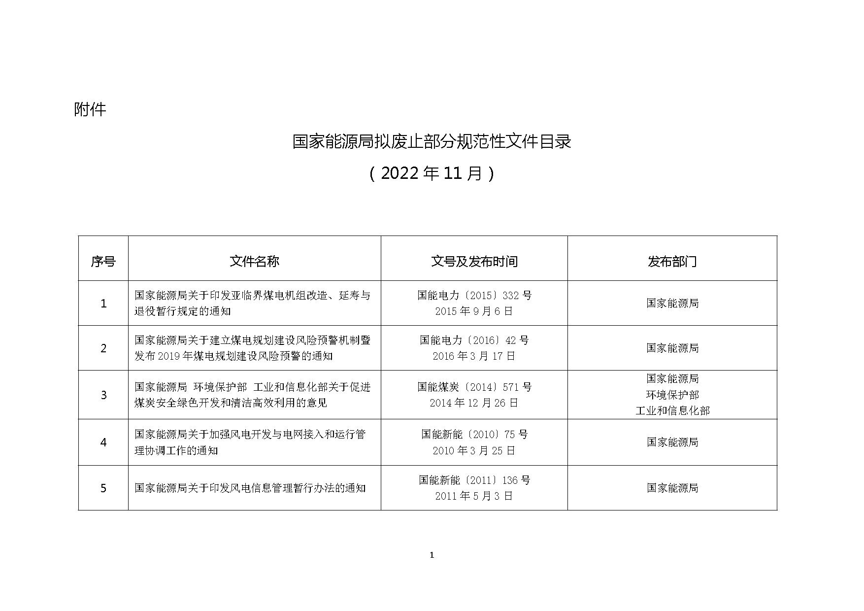 國家能源局綜合司關(guān)于公開征求擬廢止部分規(guī)范性文件意見的通知
