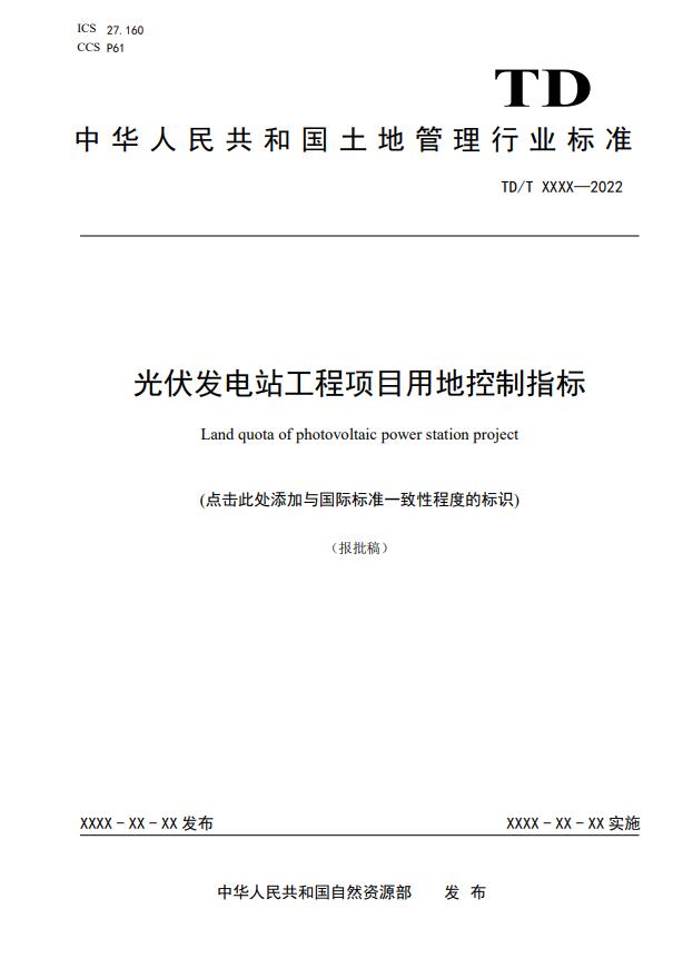《光伏發(fā)電站工程項(xiàng)目用地控制指標(biāo)》等3項(xiàng)行業(yè)標(biāo)準(zhǔn)報(bào)批稿公示