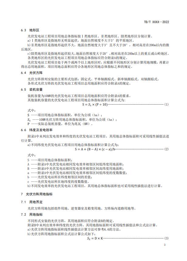 12月5日,自然資源部發(fā)布“《光伏發(fā)電站工程項(xiàng)目用地控制指標(biāo)》等3項(xiàng)行業(yè)標(biāo)準(zhǔn)報(bào)批稿公示”,文件指出:光伏發(fā)電站工程項(xiàng)目用地總體指標(biāo)按Ⅰ類(lèi)地形區(qū)、Ⅱ類(lèi)地形區(qū)、Ⅲ類(lèi)地形區(qū)分別計(jì)算。光伏發(fā)電站工程項(xiàng)目處于兩個(gè)或兩個(gè)以上地形區(qū)時(shí),應(yīng)根據(jù)不同地形區(qū)分別計(jì)算用地規(guī)模,再累計(jì)得出總用地面積。項(xiàng)目用地總面積應(yīng)符合各地形區(qū)用地總體指標(biāo)之和的規(guī)定。