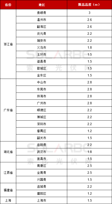例如,為保障項(xiàng)目安全,浙江、廣東、湖北、江西、上海等地區(qū)對光伏在屋頂安裝的高度,做出了明確的規(guī)定。