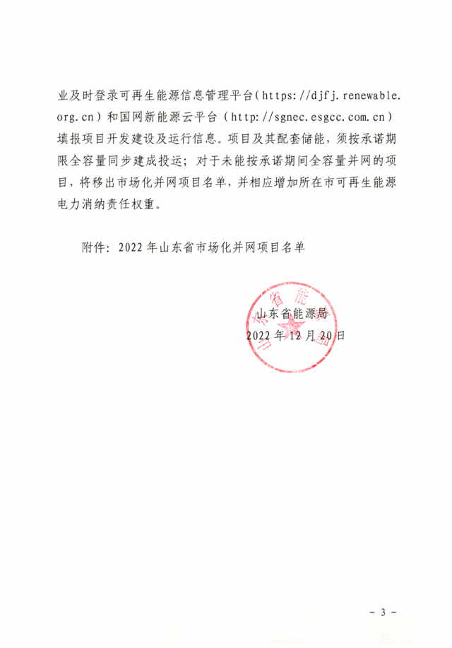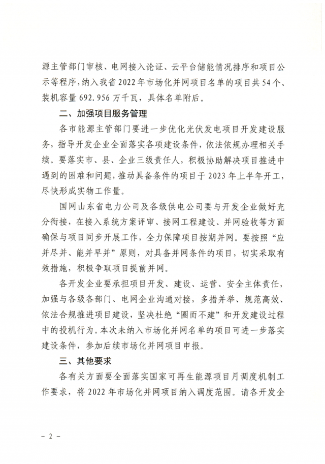12月20日,山東省能源局公布2022年市場化并網(wǎng)光伏發(fā)電項目名單,共有54個項目入選,合計裝機7GW。具體名單如下: