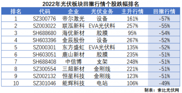 而自8月份開始的回撤行情中,平均回撤幅度達到41%,其中近期頻頻領(lǐng)漲光伏板塊的膠膜、支架等輔材環(huán)節(jié)回撤幅度最深。