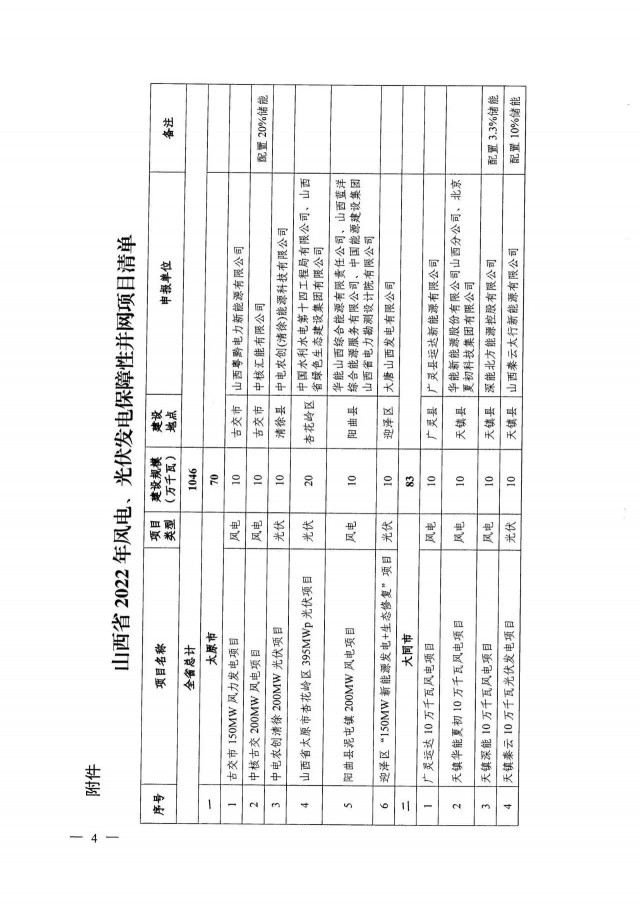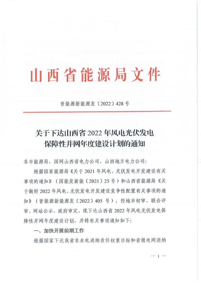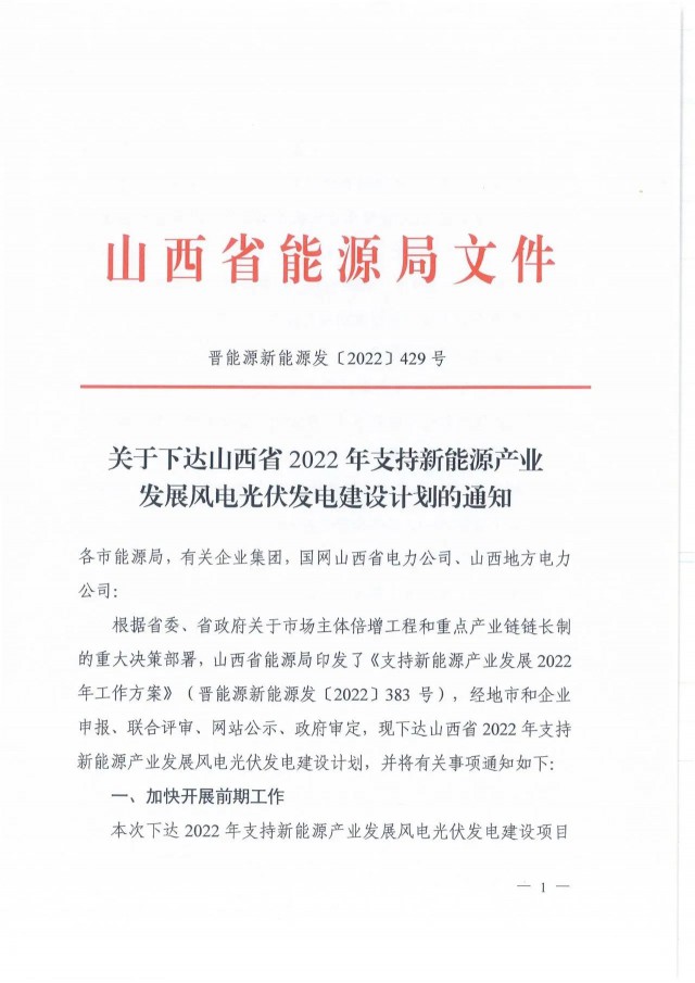 近日,山西省能源局先后印發(fā)了《關(guān)于下達(dá)山西省2022年風(fēng)電光伏發(fā)電保障性并網(wǎng)年度建設(shè)計(jì)劃的通知》(晉能源新能源發(fā)〔2022〕428號)和《關(guān)于下達(dá)山西省2022年支持新能源產(chǎn)業(yè)發(fā)展風(fēng)電光伏發(fā)電建設(shè)計(jì)劃的通知》(晉能源新能源發(fā)〔2022〕429號),共下達(dá)風(fēng)電、光伏項(xiàng)目132個(gè),規(guī)模合計(jì)1418萬千瓦(14.18GW)。