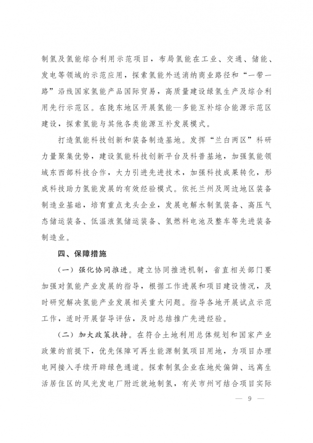 1月3日,甘肅省人民政府辦公廳發(fā)布關(guān)于氫能產(chǎn)業(yè)發(fā)展的指導(dǎo)意見(jiàn),意見(jiàn)指出,支持在高速公路服務(wù)區(qū)內(nèi)布局建設(shè) “分布式光伏+制氫、儲(chǔ)氫、加氫”一體化示范應(yīng)用。培育 “風(fēng)光發(fā)電+氫儲(chǔ)能”一體化應(yīng)用模式,探索氫儲(chǔ)能與波動(dòng)性可再生能源發(fā)電協(xié)同運(yùn)行的商業(yè)化運(yùn)營(yíng)模式,對(duì)比研究氫儲(chǔ)能與電池儲(chǔ)能、熔鹽儲(chǔ)能等其他儲(chǔ)能方式單獨(dú)或混合儲(chǔ)能的技術(shù)特點(diǎn)和經(jīng)濟(jì)性。