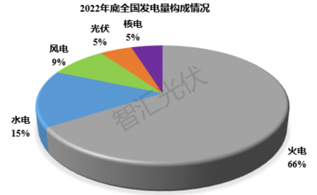 截止2022年底,各類(lèi)電源累計(jì)裝機(jī)結(jié)構(gòu)如下圖所示。其中,風(fēng)電、光伏裝機(jī)占比達(dá)到30%。