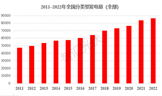 以下是2011-2022年全國(guó)各類(lèi)型發(fā)電量情況。