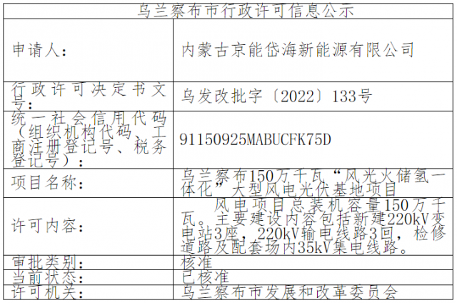 1、烏蘭察布岱海發(fā)電150萬千瓦風(fēng)光火儲(chǔ)氫一體項(xiàng)目