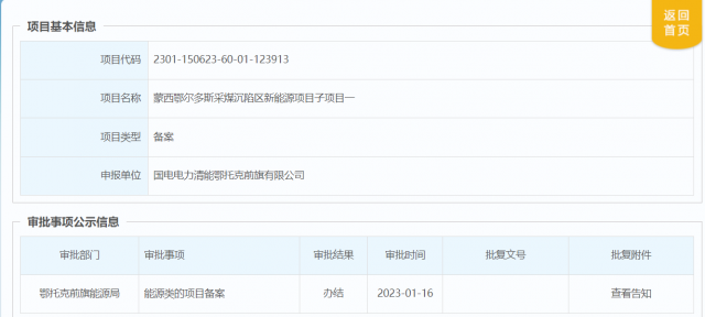 1月16日,國(guó)家能源集團(tuán)國(guó)電電力蒙西鄂爾多斯采煤沉陷區(qū)300萬千瓦光伏項(xiàng)目取得備案證明。