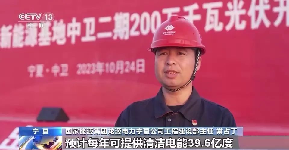 國家能源集團龍源電力寧夏公司工程建設(shè)部主任常占丁:二期項目建成并網(wǎng)后,預(yù)計每年可提供清潔電能39.6億度,節(jié)約120.7萬噸標(biāo)準(zhǔn)煤,可滿足330萬個家庭一年的用電量。