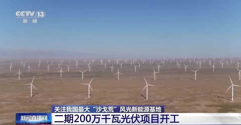 10月24日,我國最大“沙戈荒”風(fēng)光基地項目——國家能源集團寧夏騰格里沙漠風(fēng)光基地,二期200萬千瓦光伏項目正式開工建設(shè)。