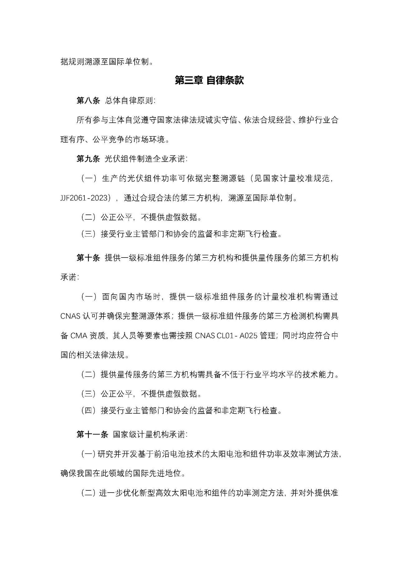 《自律公約》瞄準(zhǔn)確保光伏組件功率準(zhǔn)確溯源、減小功率標(biāo)定偏差、減少光伏產(chǎn)品以次充好等目標(biāo),引導(dǎo)各方緩解國內(nèi)外貿(mào)易過程中對組件功率數(shù)據(jù)的分歧,積極促進(jìn)光伏市場可持續(xù)發(fā)展,在光伏組件功率標(biāo)定、傳遞和溯源等方面,對光伏組件制造企業(yè)、第三方檢測認(rèn)證機(jī)構(gòu)、計(jì)量機(jī)構(gòu)提出了自律性要求和倡議。