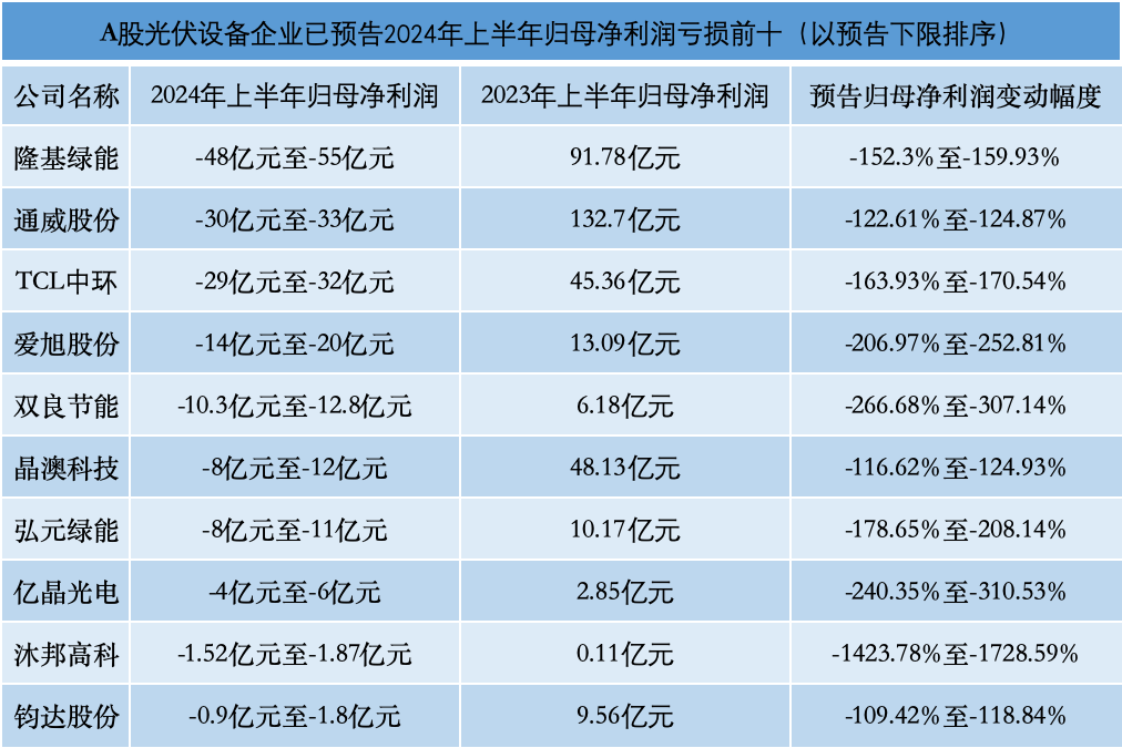 近日,部分光伏企業(yè)預(yù)披露了2024年上半年業(yè)績。