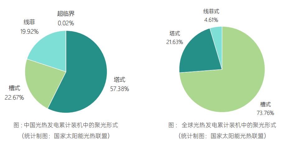 中國和全球光熱發(fā)電累計裝機中的聚光形式