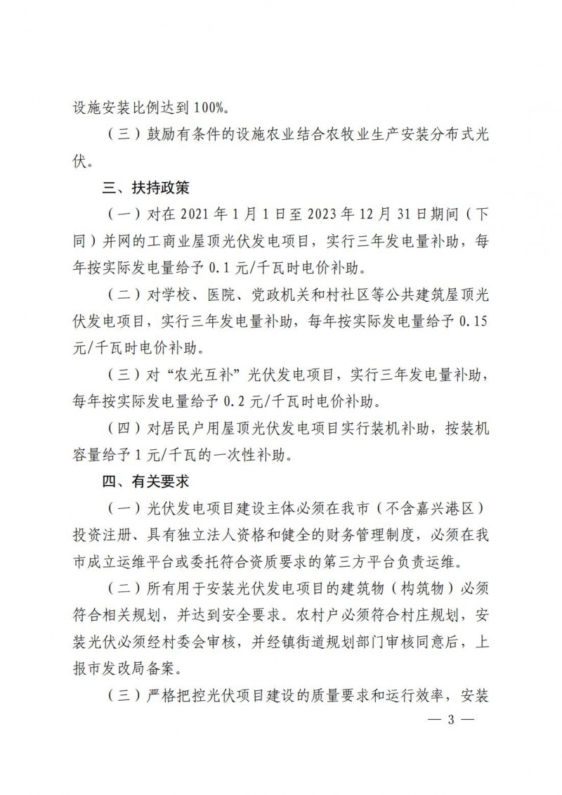 扶持政策方面,對在2021年1月1日至2023年12月31日期間(下同)并網(wǎng)的工商業(yè)屋頂光伏發(fā)電項目,實行三年發(fā)電量補助,每年按實際發(fā)電量給予0.1元/千瓦時電價補助。