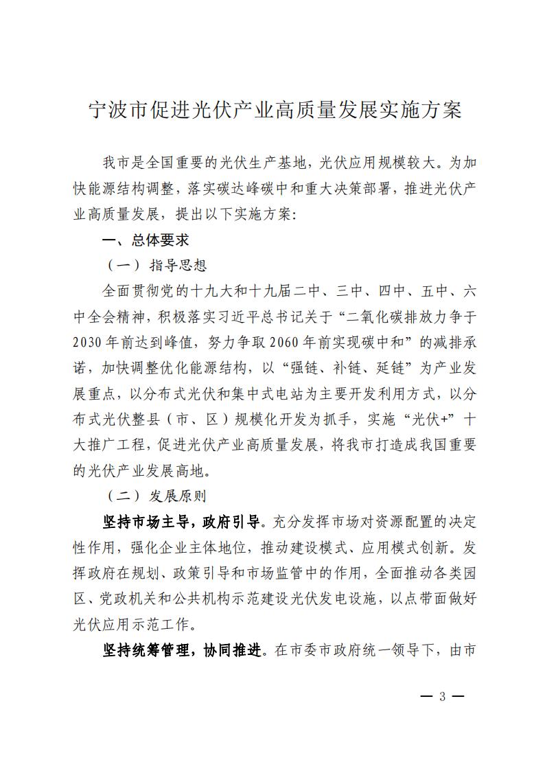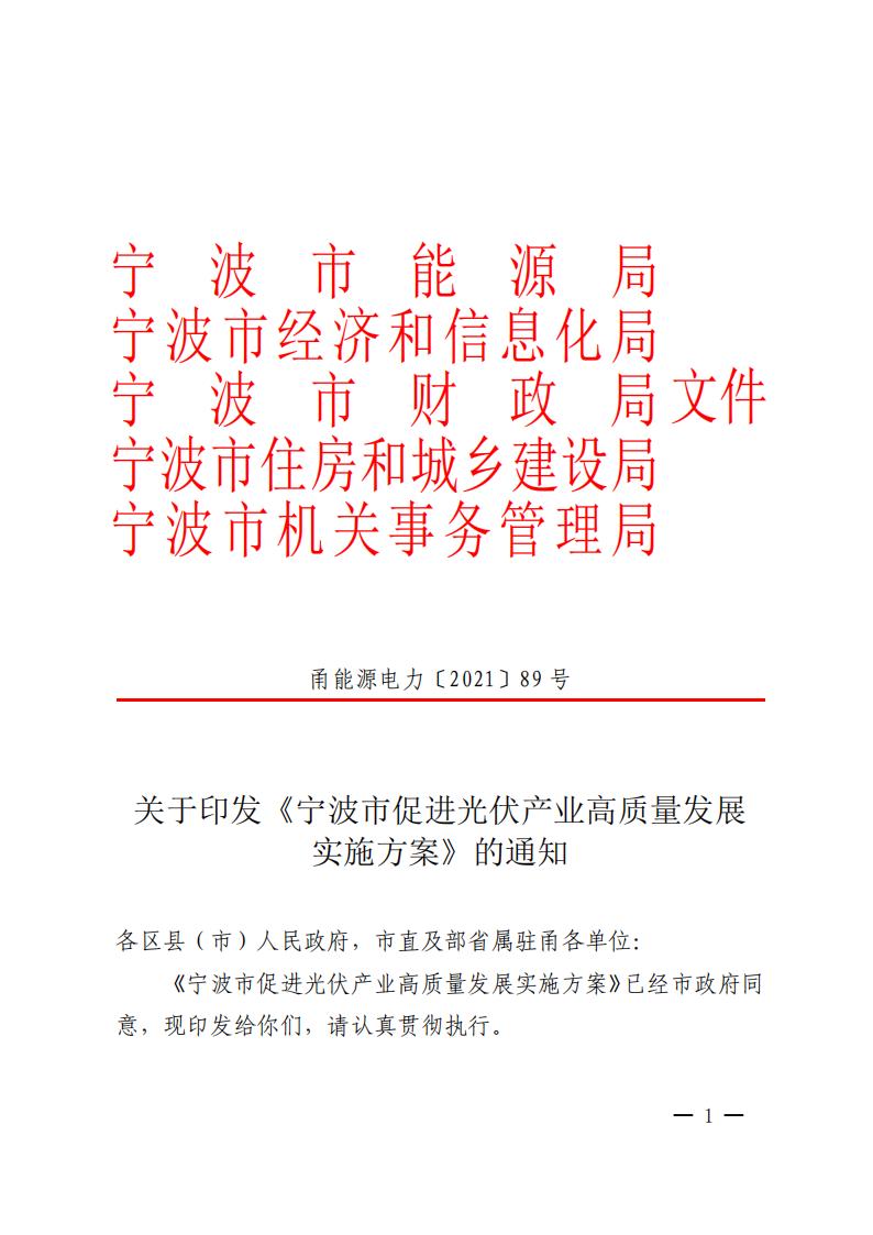 1月24日,寧波市發(fā)改委下發(fā)關(guān)于印發(fā)《寧波市促進(jìn)光伏產(chǎn)業(yè)高質(zhì)量發(fā)展實(shí)施方案》的通知。