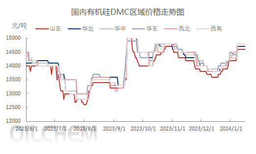 據(jù)悉,本輪有機硅DMC漲價始于合盛硅業(yè)(603260.SH)率先將DMC價格上調300元/噸,進而引發(fā)主要廠商跟漲。“1月6號突然進行了提價,上漲300元/噸,打破了該廠家價格上持久的安靜,其他廠商開始限量惜售,整個市場上現(xiàn)貨變得緊張,恐慌情緒下引發(fā)了下游集中補庫。從現(xiàn)在DMC廠商情況來看,在前期的調度下出貨沒有任何壓力。”隆眾資訊分析師劉昊介紹稱。
