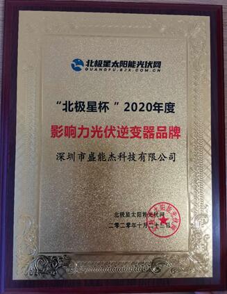 盛能杰榮獲2020“北極星杯”影響力光伏逆變器品牌獎(jiǎng)