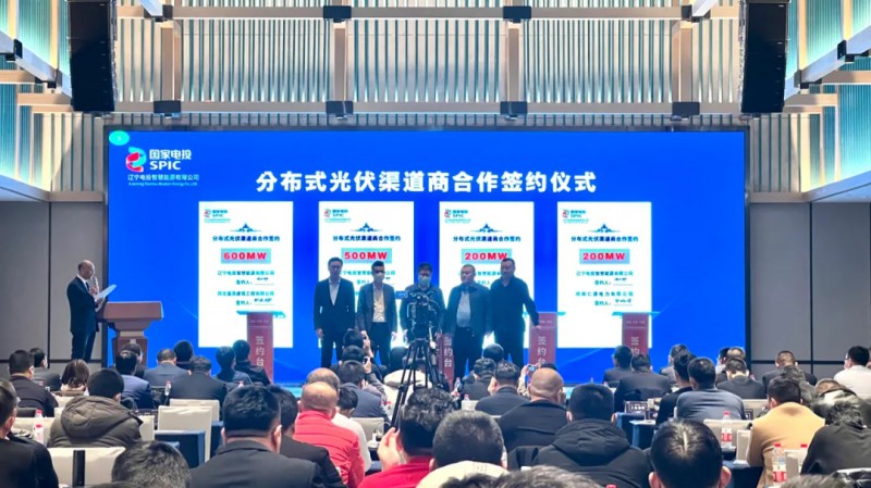 本次會(huì)議圍繞分布式光伏建設(shè)要素及應(yīng)用、分布式光伏發(fā)展趨勢(shì)及整縣推進(jìn)注意事項(xiàng)等主題進(jìn)行了交流,同時(shí)發(fā)布了遼寧智慧戶用光伏金融產(chǎn)品及招商合作政策。會(huì)議上,國(guó)家電投與金融機(jī)構(gòu)、設(shè)備供應(yīng)商、分布式光伏渠道商完成了戰(zhàn)略合作簽約。江蘇赫冉新能源集團(tuán)有限公司董事長(zhǎng)陳建輝先生受邀出席本次會(huì)議,并簽署了500MW戶用分布式開發(fā)建設(shè)協(xié)議。