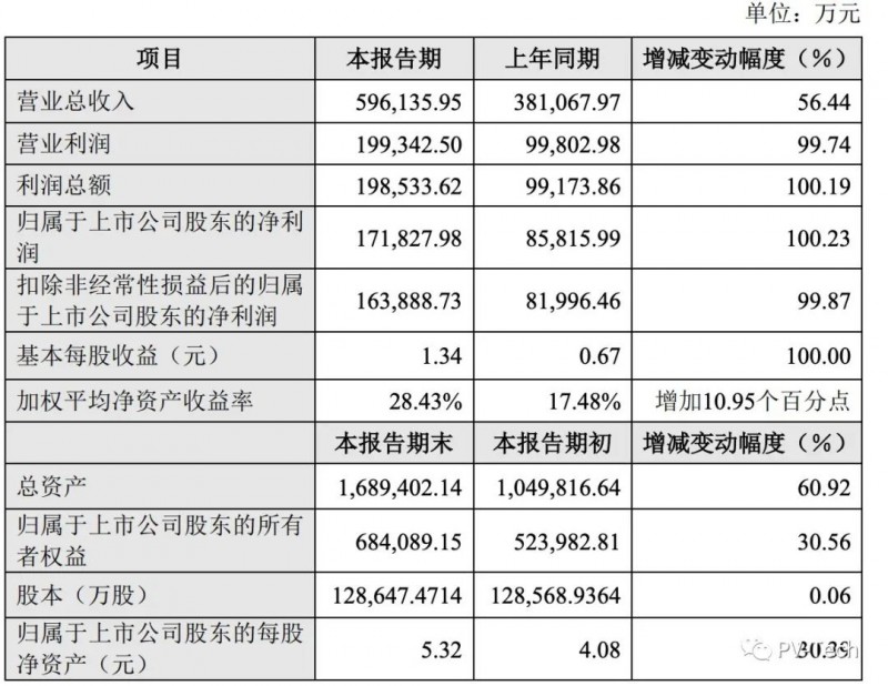 3月8日晚間,晶盛機電(300316.SZ)發(fā)布2021年度業(yè)績快報,報告期內(nèi),公司營業(yè)總收入約59.61億元,同比增加56.44%;歸屬于上市公司股東的凈利潤盈利約17.18億元,同比增加100.23%;基本每股收益盈利1.34元,同比增加100%。