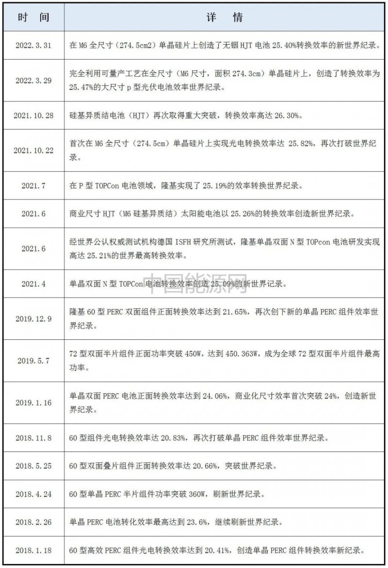 隆基部分光伏效率世界紀(jì)錄歷程