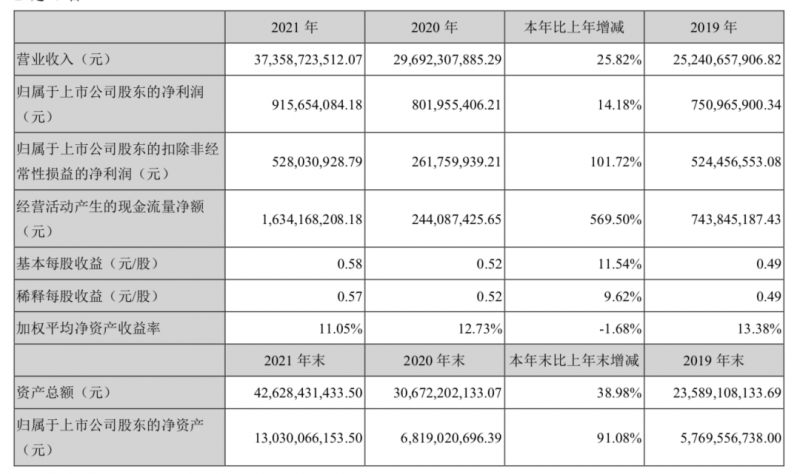 4月12日晚上,欣旺達(dá)公布了2021年的年報業(yè)績,整個2021年欣旺達(dá)實現(xiàn)了全年營業(yè)收入373.6億元,同比增長25.82%,歸母凈利潤為9.16億元,同比增長14.18%,扣非凈利潤為5.28億元,同比增長101.7%,毛利率為14.69%,基本持平,凈利率降低了0.4個百分點到2.29%。