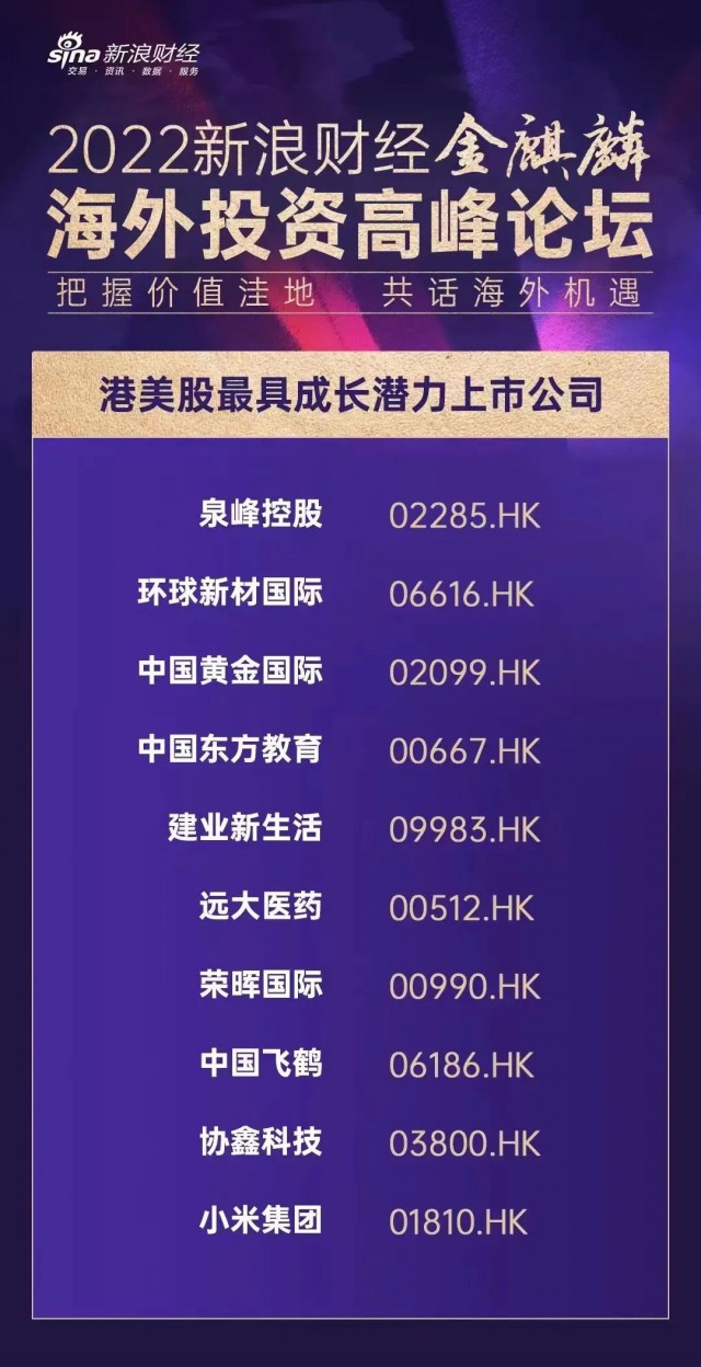 2022年9月23日,在新浪財經(jīng)主辦的2022年金麒麟海外投資峰會暨港美股最佳上市公司評選活動中,協(xié)鑫科技(03800.HK)憑借在光伏材料領(lǐng)域的科技創(chuàng)新與行業(yè)貢獻,榮膺“2022新浪財經(jīng)港美股最具成長潛力上市公司”,協(xié)鑫科技董事局主席朱共山先生榮獲“2022新浪財經(jīng)港美股最具領(lǐng)導力企業(yè)家”稱號,獲授該稱號的還有曹德旺、王傳福等10位杰出企業(yè)家。